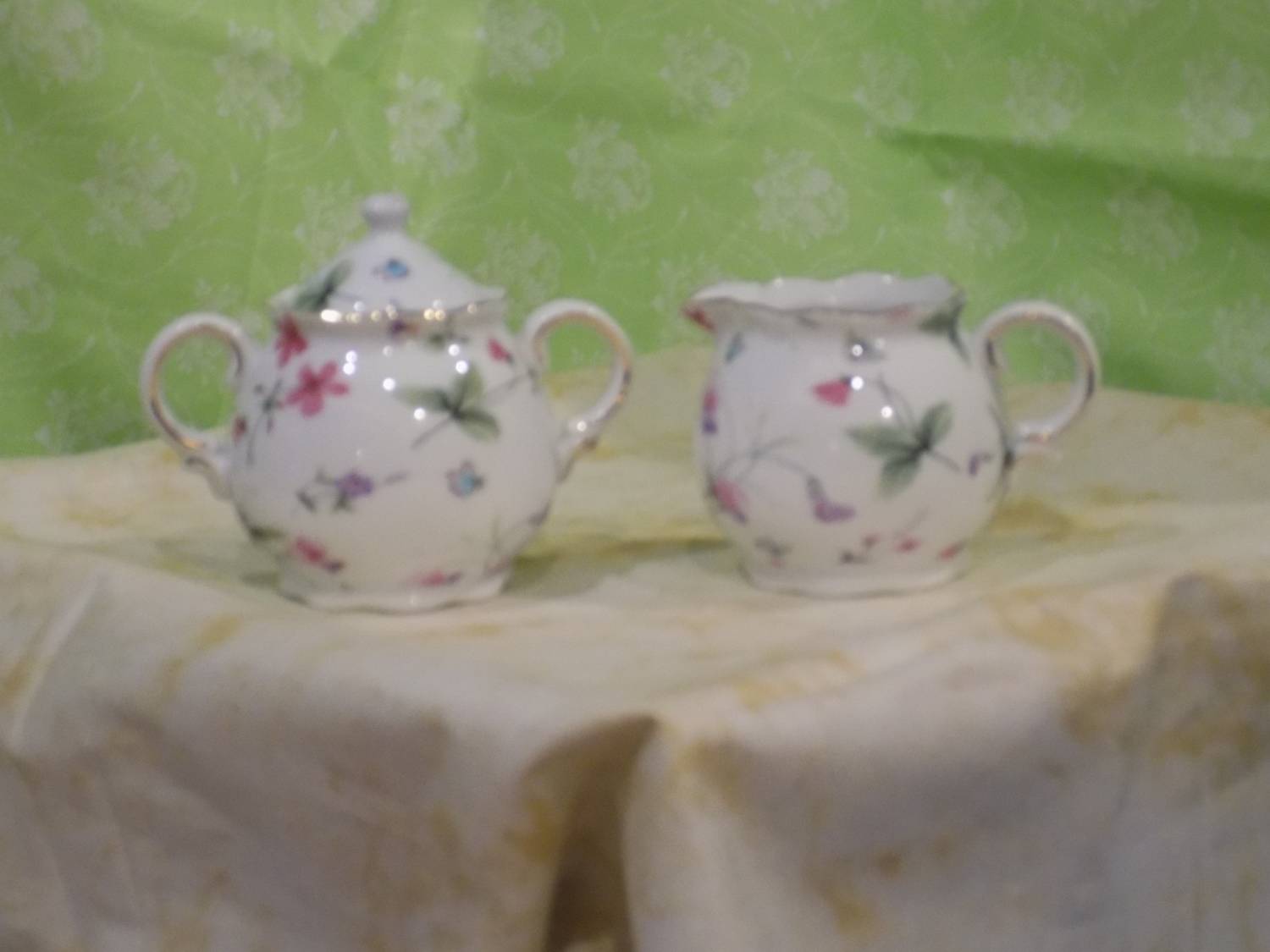 CompareBeautiful sweet pea flowers on a delicate mini cream/sugar set