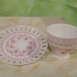 The Beautiful Pink flowered Tea Cup and Saucer are trimmed with green rims and flowers. Delicate and very pretty.