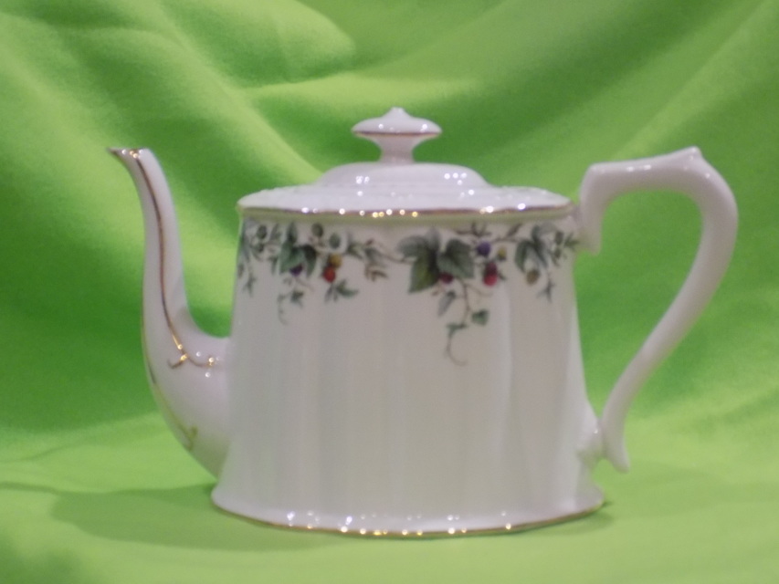 Pretty berry design along the top of the teapot. Large, 48 oz.