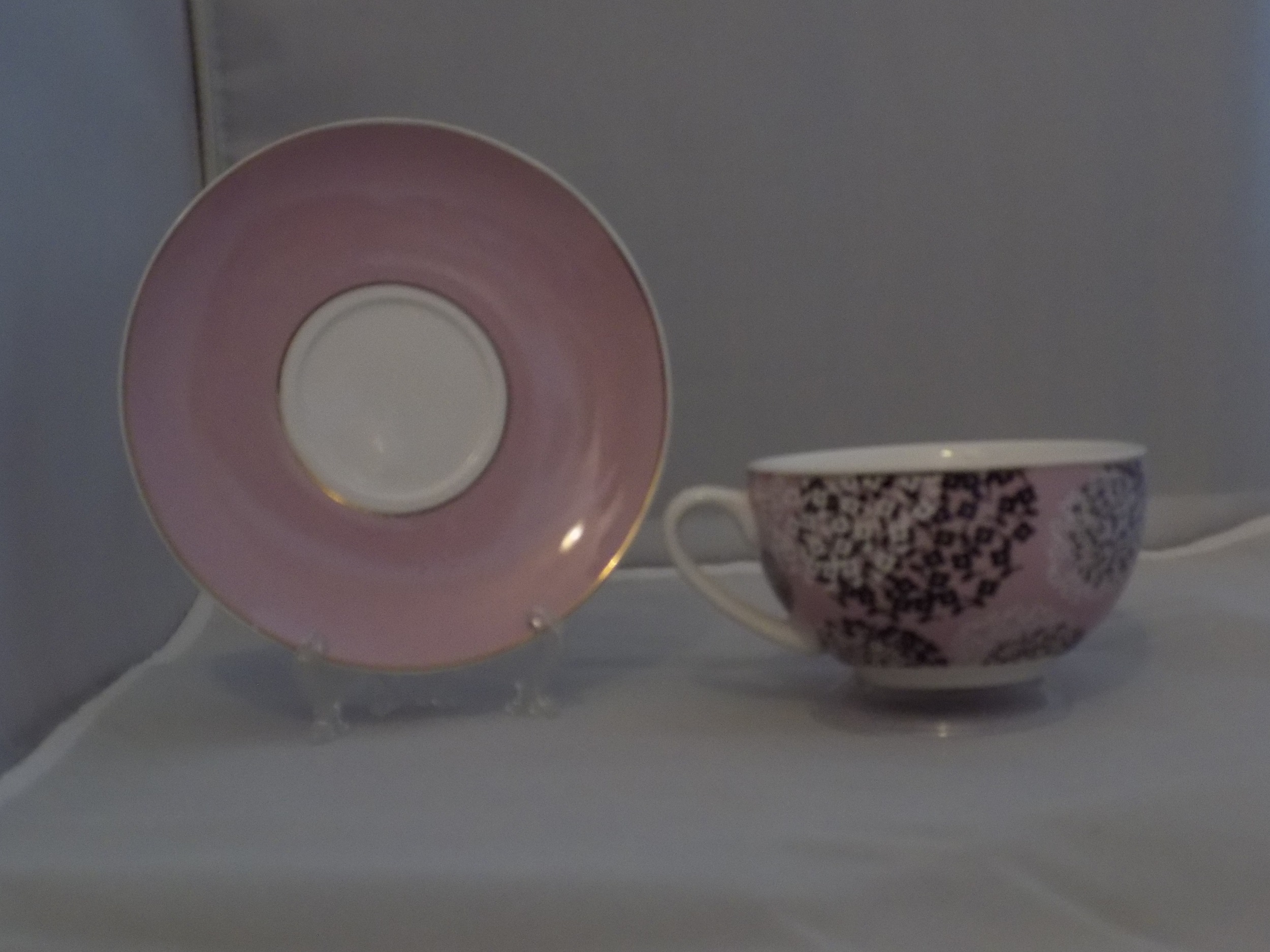 Joyful Lavender Teacup and Lavender saucer. Fun design.